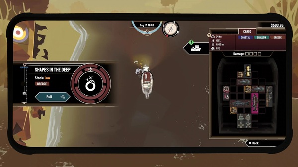 El barco es el corazón de DREDGE. Mejorarlo es esencial para avanzar y explorar zonas más peligrosas. A medida que se amplía la capacidad de carga y la velocidad, también aumentan las posibilidades de supervivencia. Sin embargo, cada mejora implica un costo, obligando al jugador a decidir entre seguridad o ganancia.